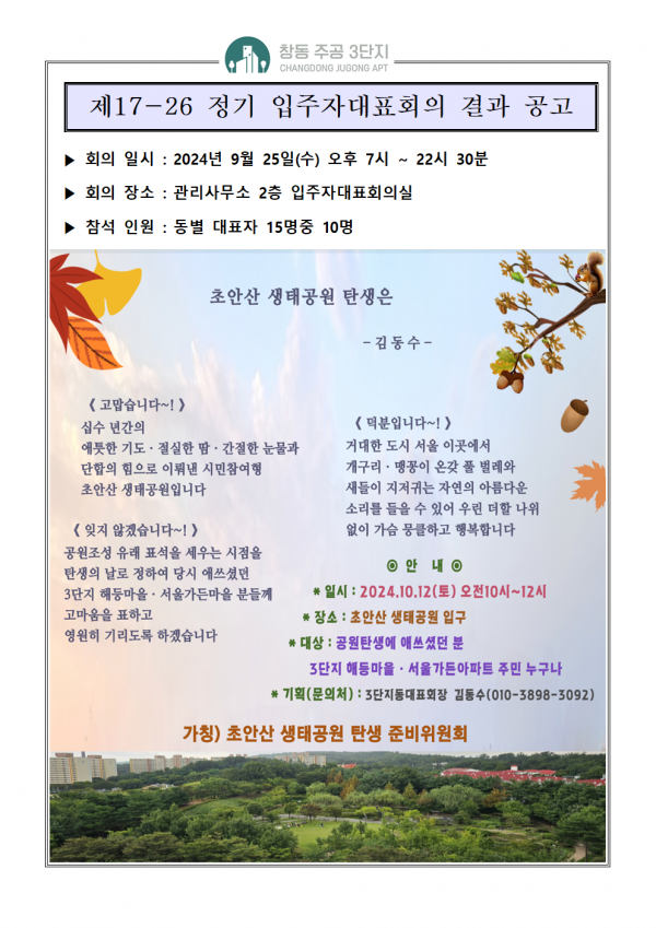 창동 주공 3단지 아파트의 입주자대표회의 결과입니다.